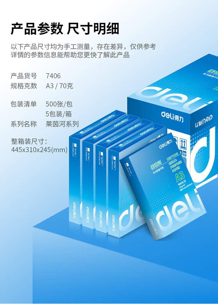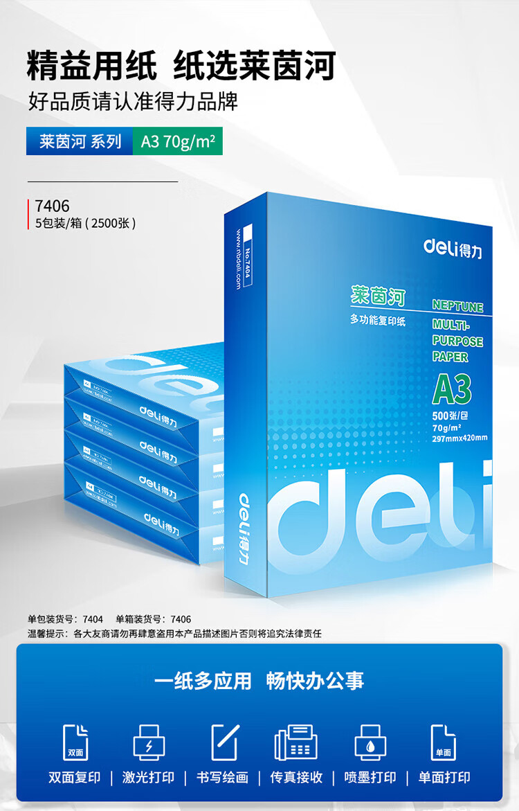 得力/deli A3 復(fù)印紙 70g克500張*5包一箱