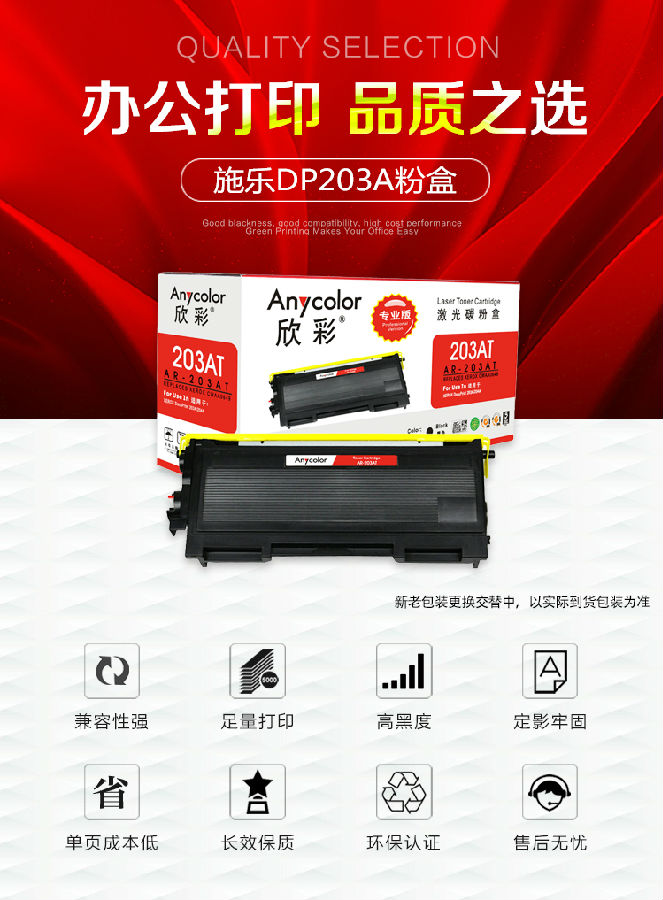 欣彩(Anycolor)DP203A粉盒(專業(yè)版)AR-203AT黑色墨粉盒 適用施樂CWAA0649 XEROX DocuPrint 203A 204A