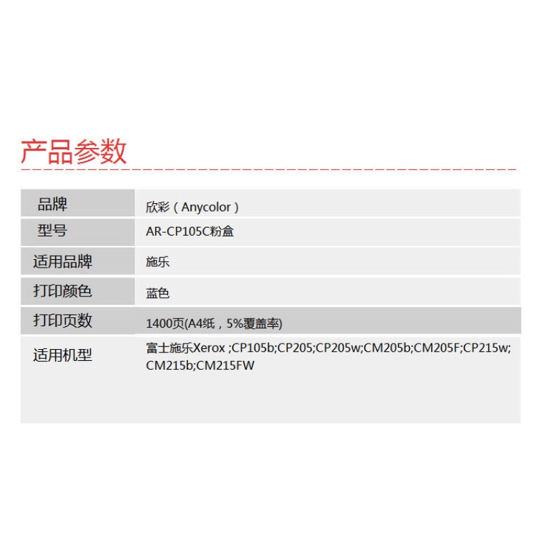欣彩(Anycolor)CP105b粉盒(專業(yè)版) AR-CP105C藍(lán)色 CT201596適用施樂CP105b 205b 215 CM215fw 205