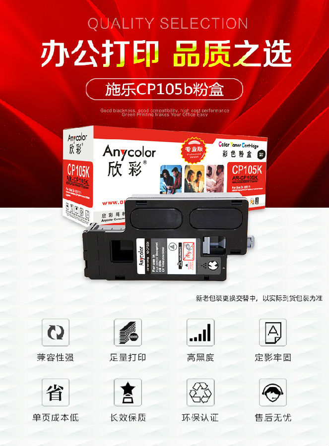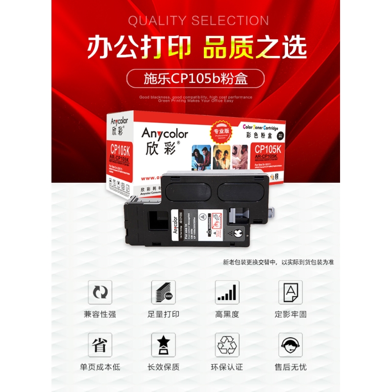 欣彩(Anycolor)CP105b粉盒(專業(yè)版) AR-CP105K黑色 CT201595適用施樂(lè)CP105b 205b 215 CM215fw 205