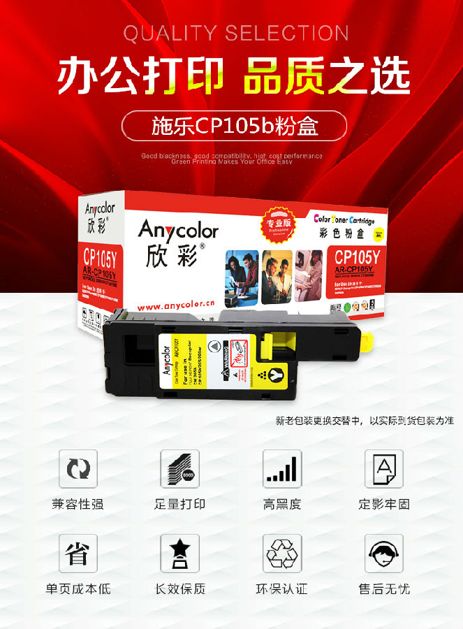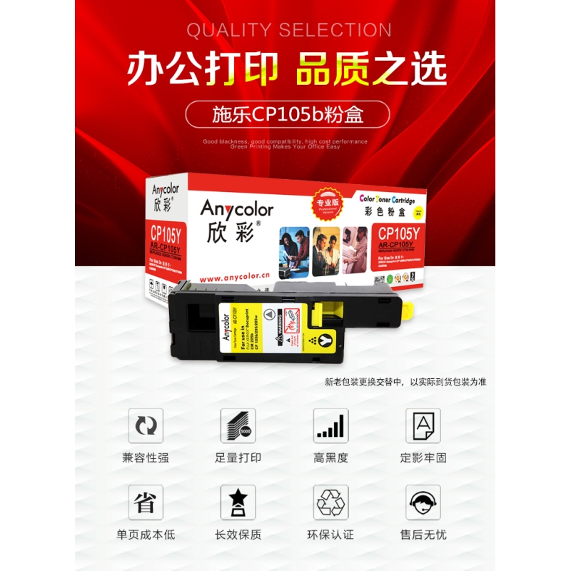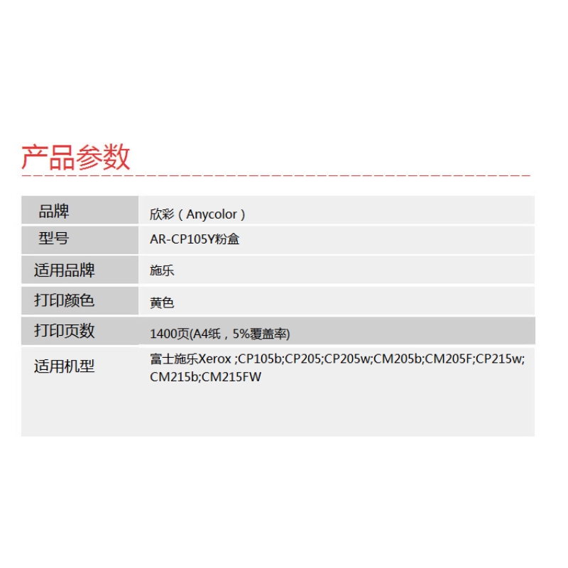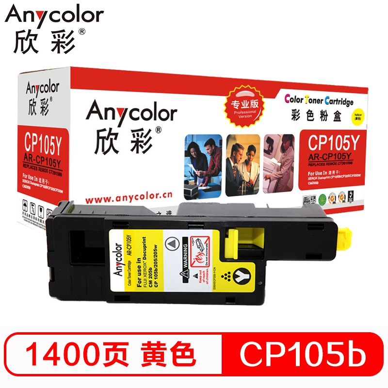 欣彩(Anycolor)CP105b粉盒(專業(yè)版) AR-CP105Y黃色 CT201598適用施樂(lè)CP105b 205b 215 CM215fw 205