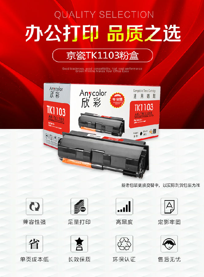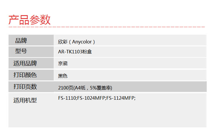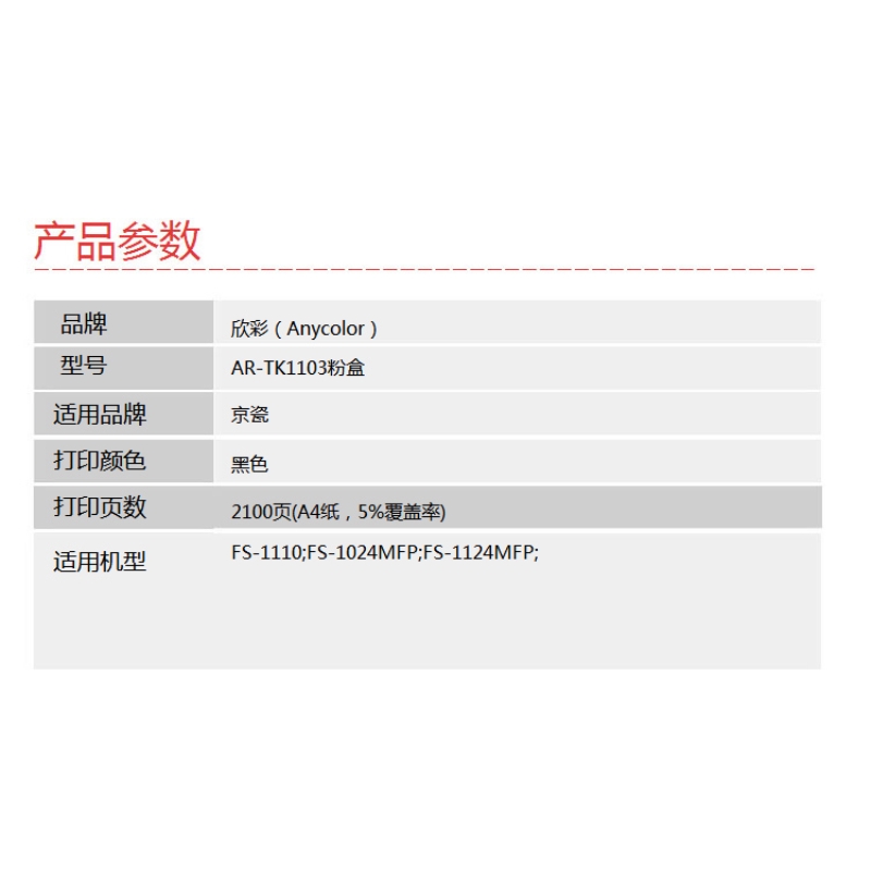 欣彩(Anycolor)TK-1103粉盒(專業(yè)版)AR-TK1103墨粉盒 適用京瓷FS-1110 1024 1124MFP 打印機 硒鼓