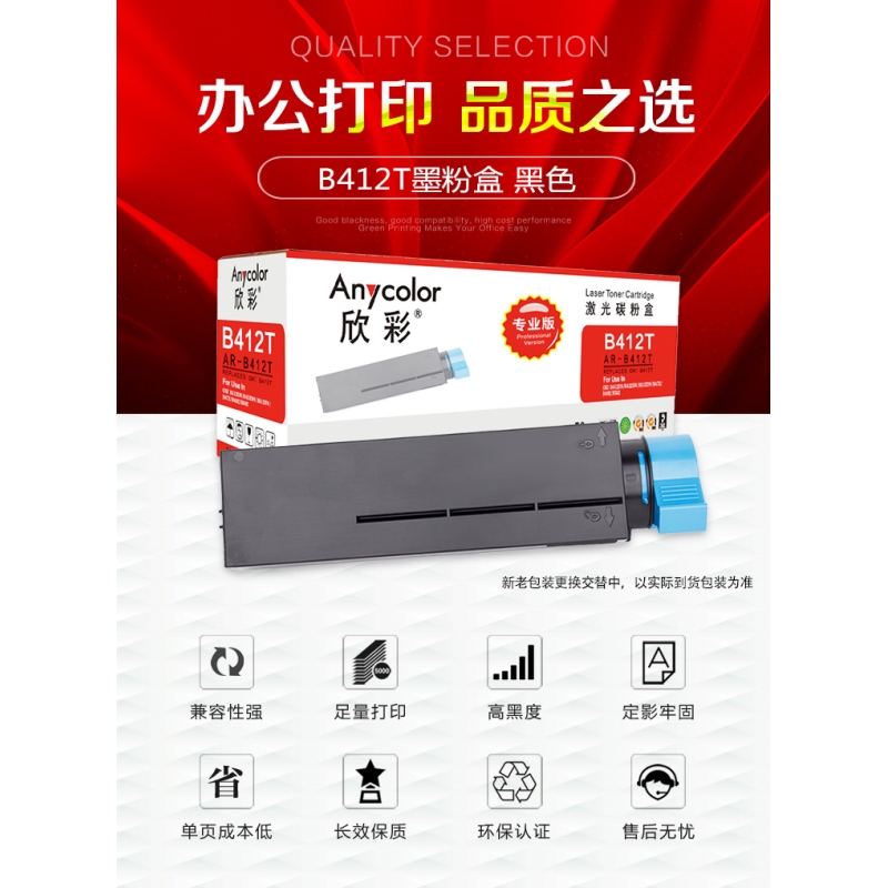 欣彩(Anycolor)B412DN粉盒(專業(yè)版)AR-B412T黑色墨粉盒 適用OKI 45807102 B432dn B512dn MB472dnw
