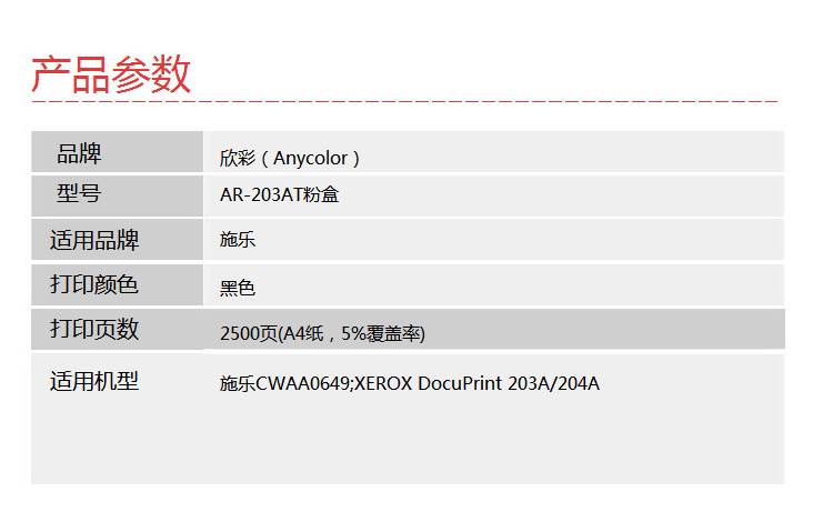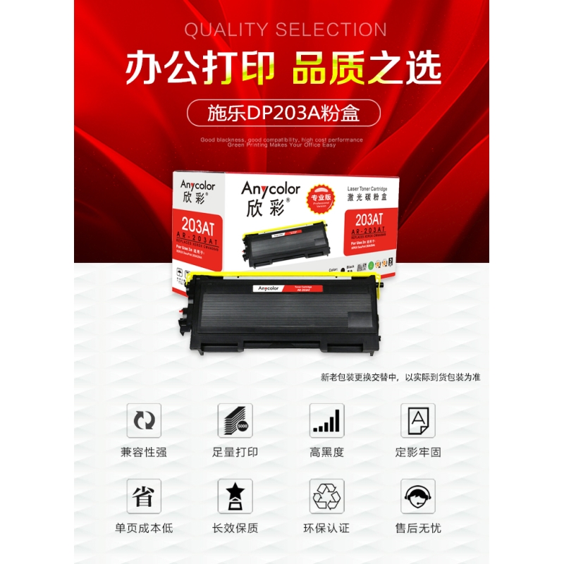 欣彩(Anycolor)DP203A粉盒(專業(yè)版)AR-203AT黑色墨粉盒 適用施樂CWAA0649 XEROX DocuPrint 203A 204A