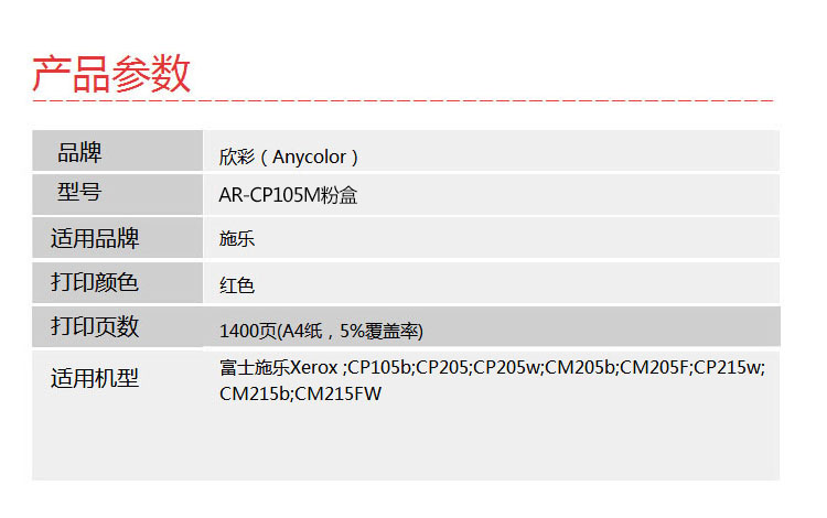 欣彩(Anycolor)CP105b粉盒(專業(yè)版) AR-CP105M紅色 CT201597適用施樂CP105b 205b 215 CM215fw 205