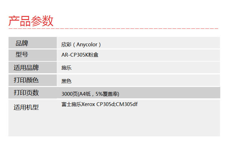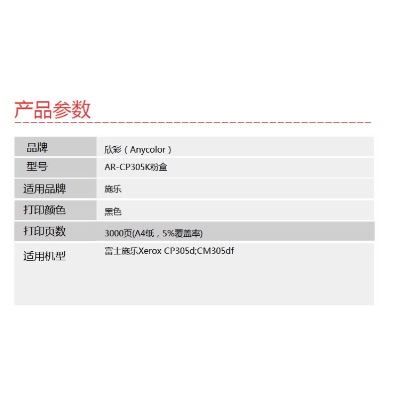 欣彩(Anycolor)CP305粉盒(專業(yè)版)AR-CP305K黑色 適用施樂 Xerox CT201636 CP305D 墨粉筒 耗材